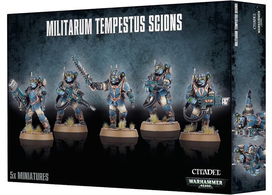 Набор “Militarum Tempestus Scions” предоставит вам четырёх Отпрысков и Темпестора. И целый арсенал оружия, чтобы вы могли собрать предельно агрессивную и эффективную боевую единицу для Warhammer 40000 или блистательную и победоносную команду для “Warhammer 40000: Kill Team”.