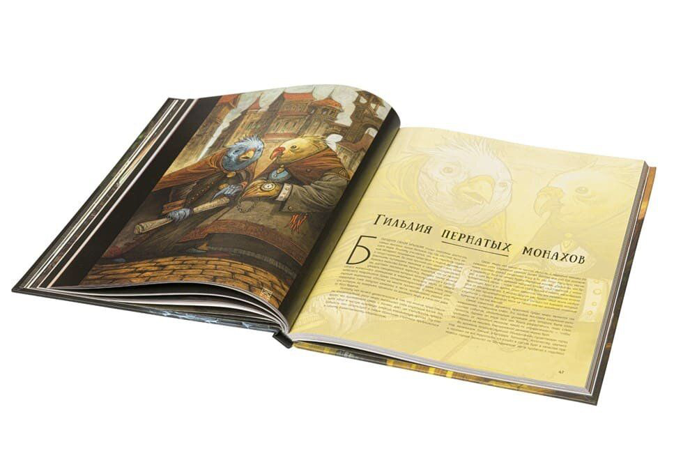 Книга волшебников наполнена не только сюрреалистичными иллюстрациями, но и повествовательными сюжетами под них. Каждая история поведает своим читателями о жителях Города Врат, истории его создания и развития, о конфликте с инквизицией. Это подробнейшие описания, в которых сплелись воедино стимканк, фэнтези, наполненные волшебством сказки, а также прослеживается тонкое подобие Плоского мира Терри Пратчетт.