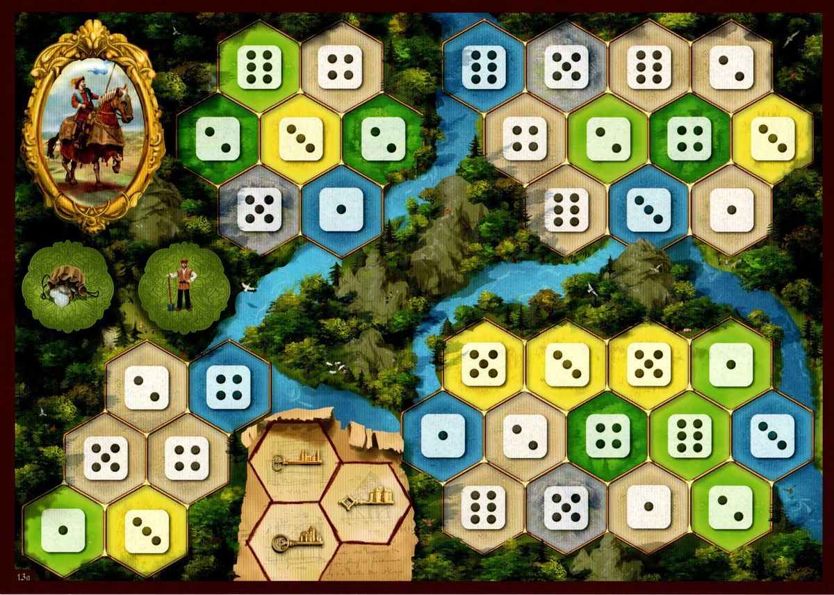 Есть разные типы тайлов и правильное их использование при любом результате выброшенных кубиков будет вести игрока к победе. Например, зеленые тайлы замков принесут игроку дополнительное действие, тайлы шахт - слитки серебра (победные очки), тайлы зданий (ратуша, церковь, мастерская и т.п.) бонусные возможности: бесплатное получение тайлов рабочих, можно бесплатно выложить на своем поле еще один тайл и применить все его эффекты, можно бесплатно взять тайл с общего игрового поля и т.д.